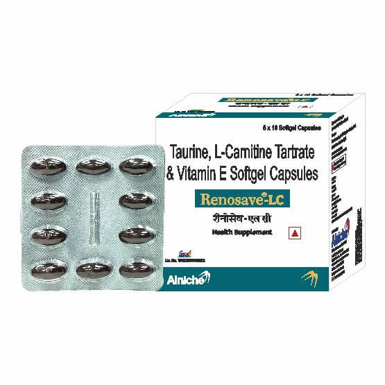 Rensosave LC is a triple-action formulation developed to address key complications commonly encountered in patients undergoing hemodialysis, including muscle cramps, intradialytic hypotension, oxidative stress, and cardiovascular dysfunction. The formulation combines L-Carnitine Tartrate, Taurine, and Vitamin E, three bioactive molecules with complementary mechanisms that collectively restore cellular energy, stabilize vascular and muscular functions, and protect against oxidative injury.